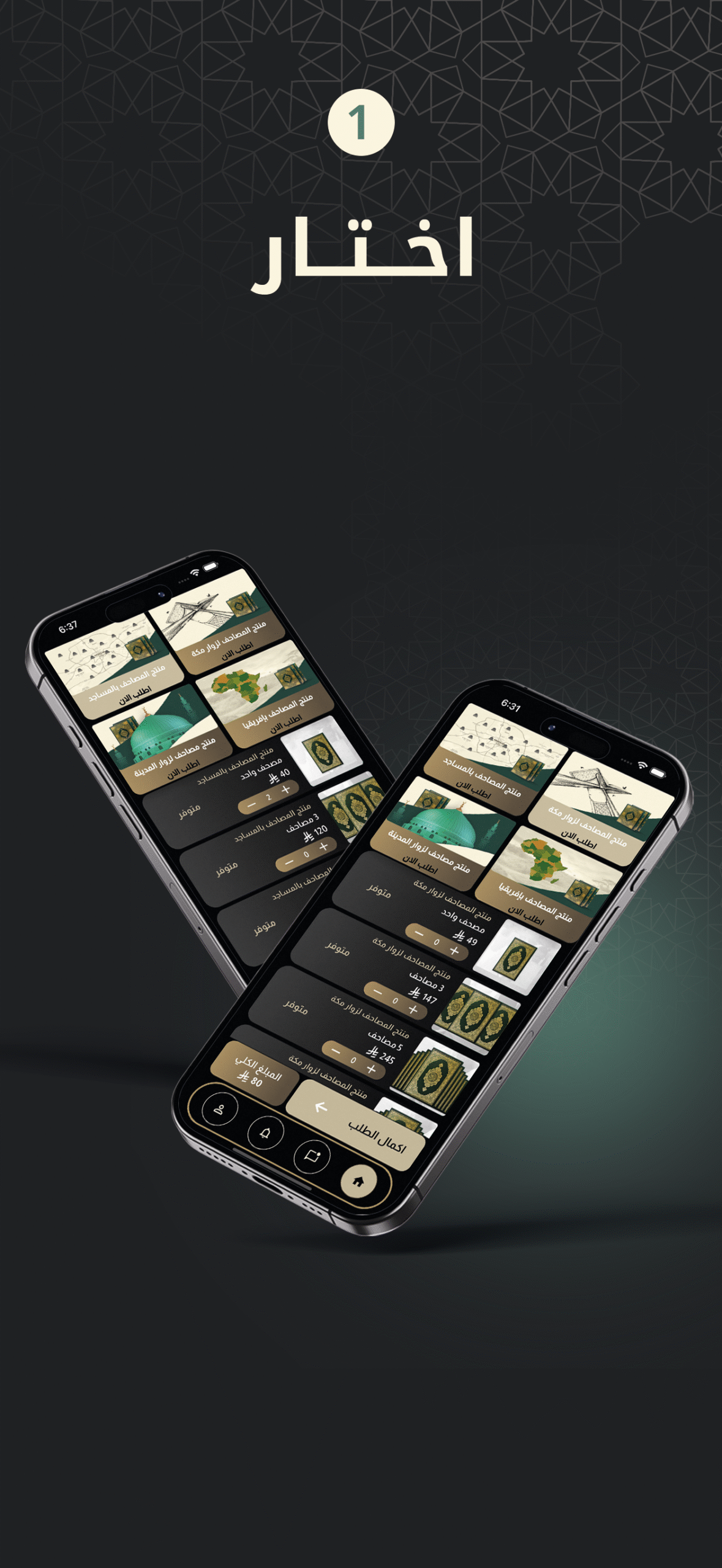مصحفك يوصل حيث تختار بخدمة احترافية ودقة عالية ووقت قياسي. أطلب الآن من خلال التطبيق ثم سيقوم فريقنا بعملية التوصيل وتوزيع المصاحف في المدينة المنورة وتوثيق عملية التوزيع بفيديو احترافي يتم ارساله اليك عبر التطبيق. اطلب الآنخطوة 1